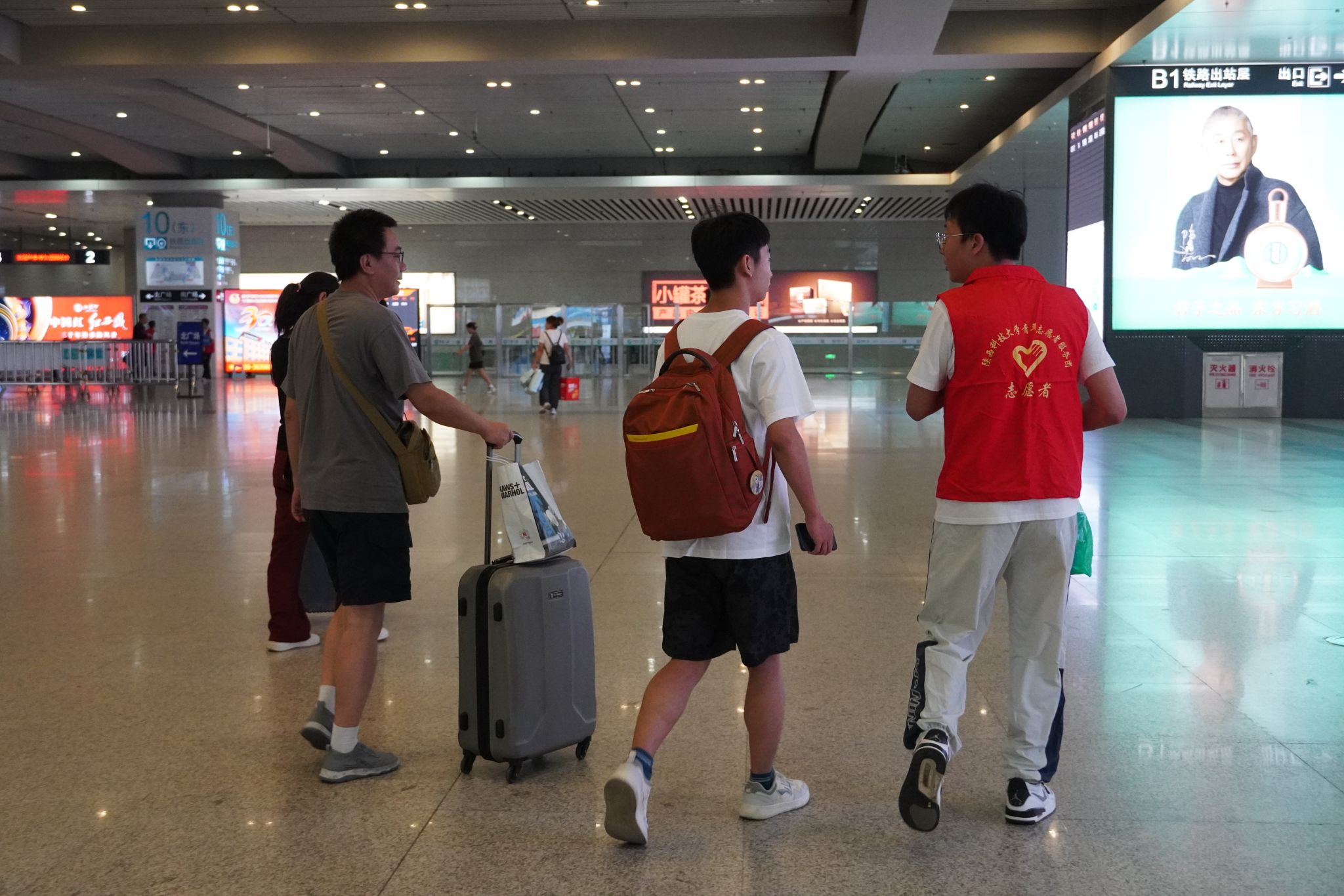 志愿者们在学校组织下为新生提供接站服务,在西安站、西安北站、地铁站口设置接站服务点。天微微亮,太阳染红了天空的一角,志愿者的红马甲映红了服务站点。在站点现场,志愿者们按照预定方案,分工明确、有条不紊地开展接站工作。志愿者们手举德赢官网Vwin引导牌,成为同学们“第一眼就能望见的感动”;跟车服务志愿者帮助新生搬运行李,一路上向同学和家长介绍学校的基本情况。