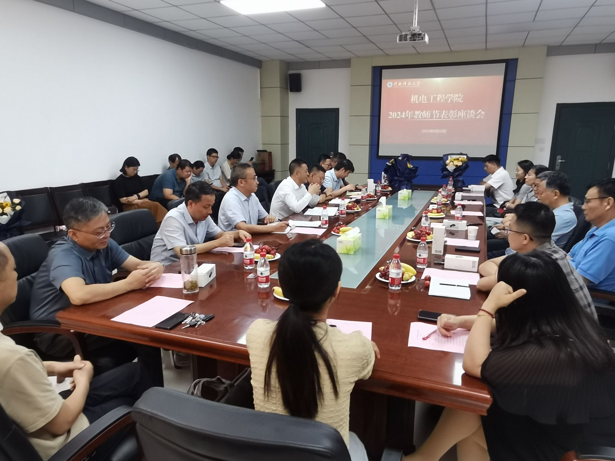 全国第40个教师节,树立先进典型,颂扬高尚师德师风,弘扬教育家精神,9月10日上午,机电工程学院(智能制造与机器人工程学院)举行2024年教师节表彰座谈会。大会由学院党委副书记景马良主持。