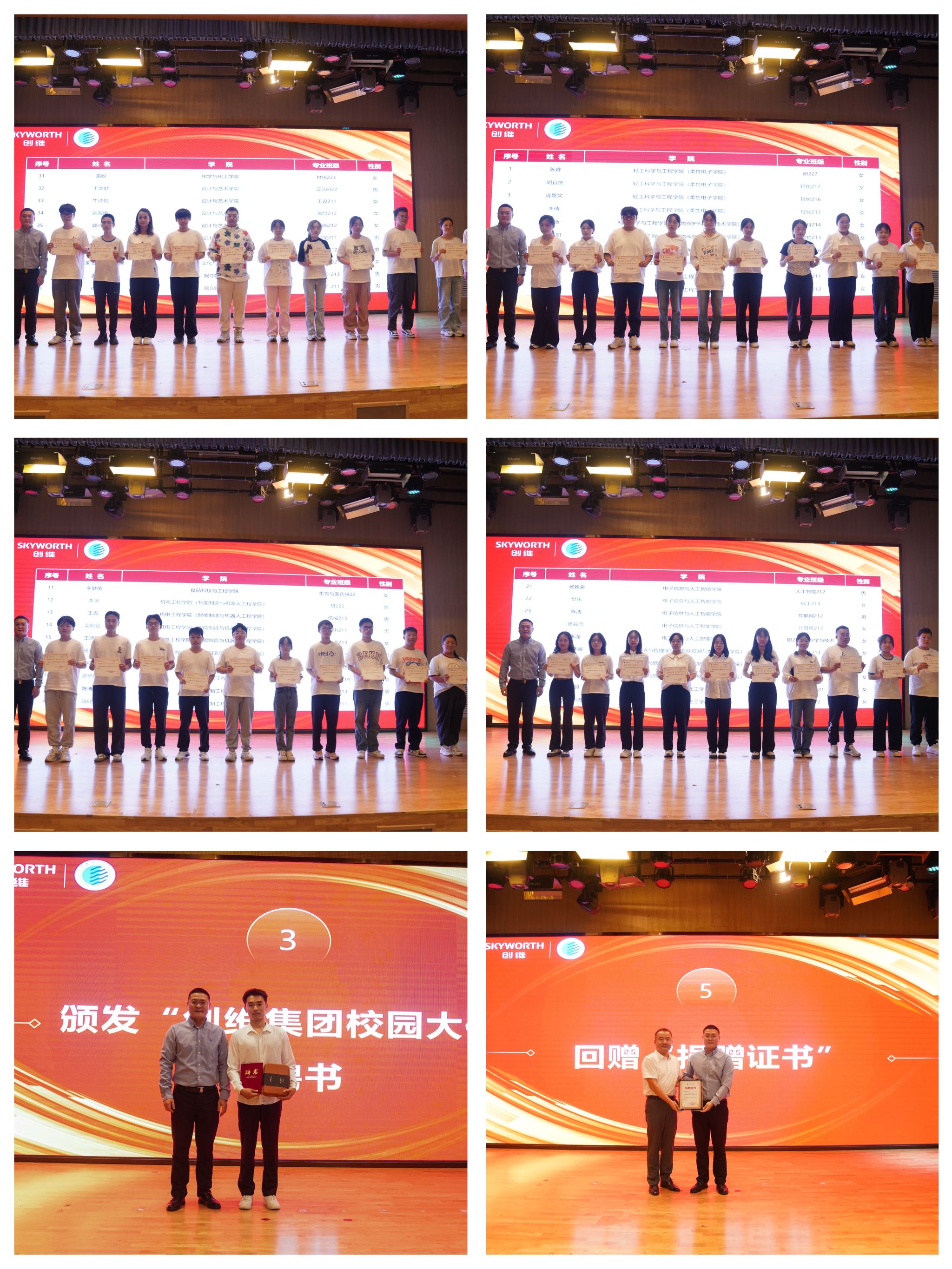 仪式上,殷立雄代表学校为创维集团颁发捐赠证书,李晓、徐立为获助学生颁发助学金证书,创维集团为校园大使颁发聘书。
