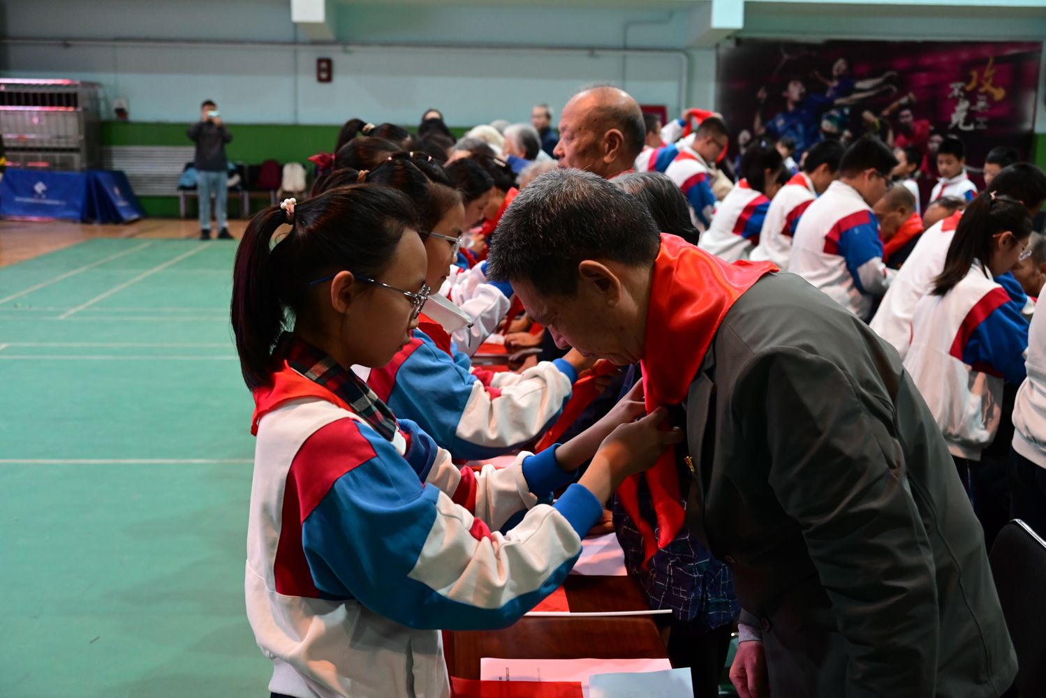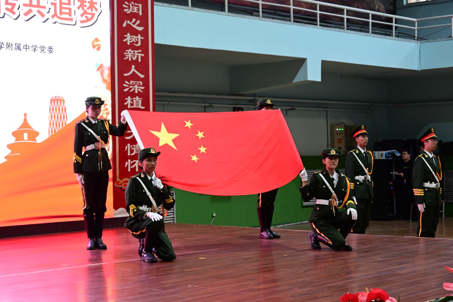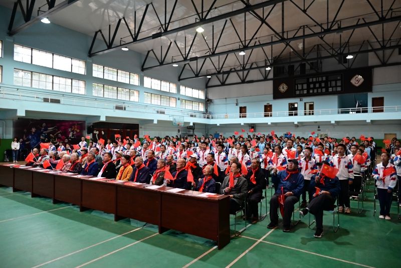 9月30日清晨,德赢官网Vwin附属中学文体馆内,师生们齐聚一堂,学校关工委办公室、离退处党委与附属中学党委联合开展“老少携手迎华诞 薪火相传共追梦”主题升旗活动。附属中学党委书记、校长王琪,离退处党委副书记、副处长高翔,处长助理苗晓洁出席活动,20余名离退休党员代表与200余名青少年学子参与活动。活动由附属中学校长助理成宏亮主持。