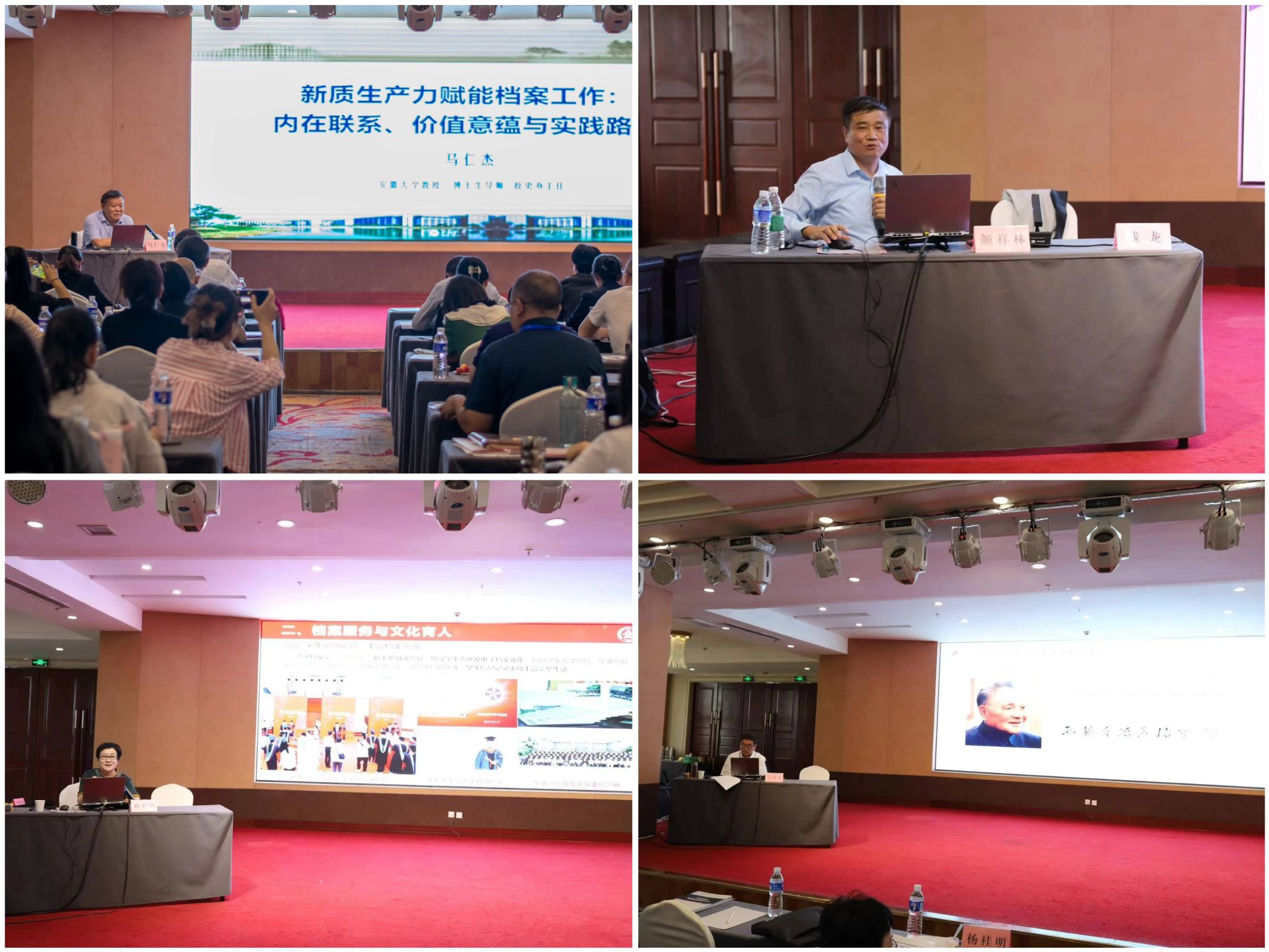 大会特别邀请了中国高等教育学会档案工作分会副理事长、安徽大学校史办主任马仁杰教授,南京大学信息管理学院教授颜祥林,中国高等教育学会档案工作分会秘书长、北京师范大学档案馆馆长杨桂明研究馆员和陕西高教系统档案学会理事长吴连书研究馆员分别作了题为《新质生产力赋能档案工作:内在联系、价值意蕴与实践路向》《高校档案职业发展思维的重塑——基于<档案法实施条例>的学习体会》《抓资源重编研强基固本 推动档案数智转型提质升级》《以习近平档案工作指示批示精神为引领,推动西部高校档案工作高质量发展》的报告。四场高水平报告分别从新质生产力赋能档案工作、档案工作法治新时代进程中高校档案从业者整体性和要素性思维的重塑、新时代高校档案事业发展数智化转型以及习近平总书记对档案工作的指示批示精神等方面做了精彩论述,为档案工作走向依法管理、走向开放、走向现代化提供了深刻的启发。