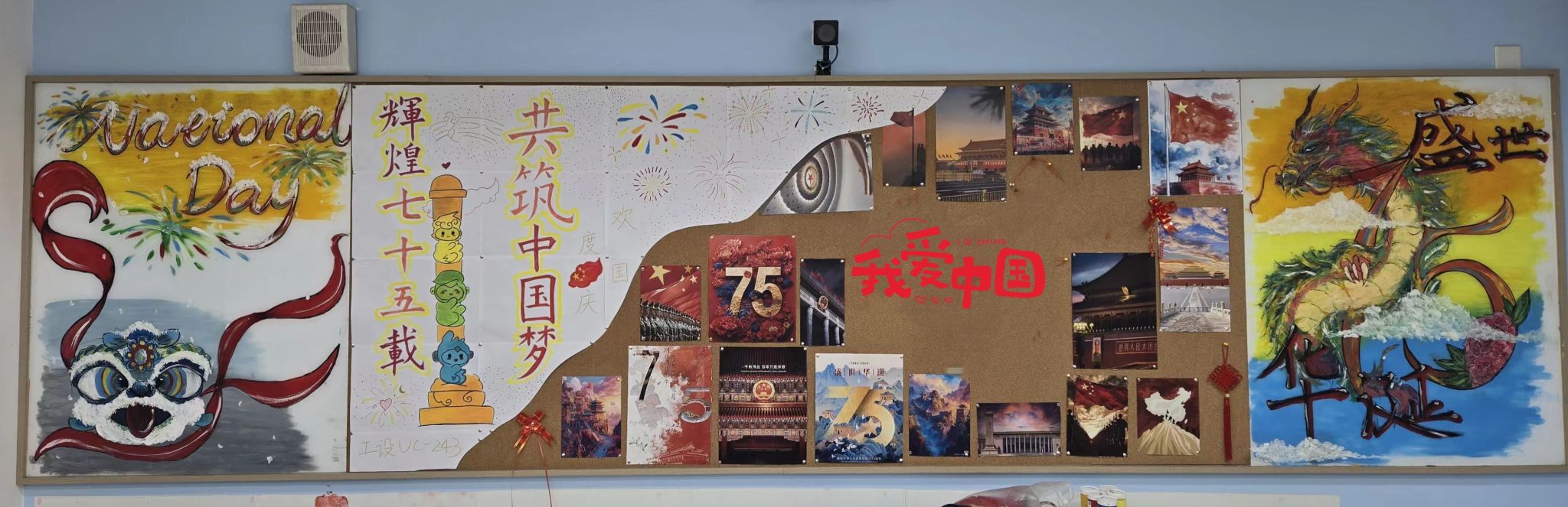 献礼祖国,绘就奋进画卷。学院注重发挥环境育人效果,利用班级自用教室开展以“辉煌七十五载,共筑中国梦”为主题的教室板报设计大赛。板报的内容丰富多彩,既有对革命历史的回顾,也有对当代中国发展成就的展示;既有对英雄人物的缅怀,也有对未来美好生活的憧憬,引导学生以笔寄情、以情融境,充分表达对祖国的热爱与深深祝福。