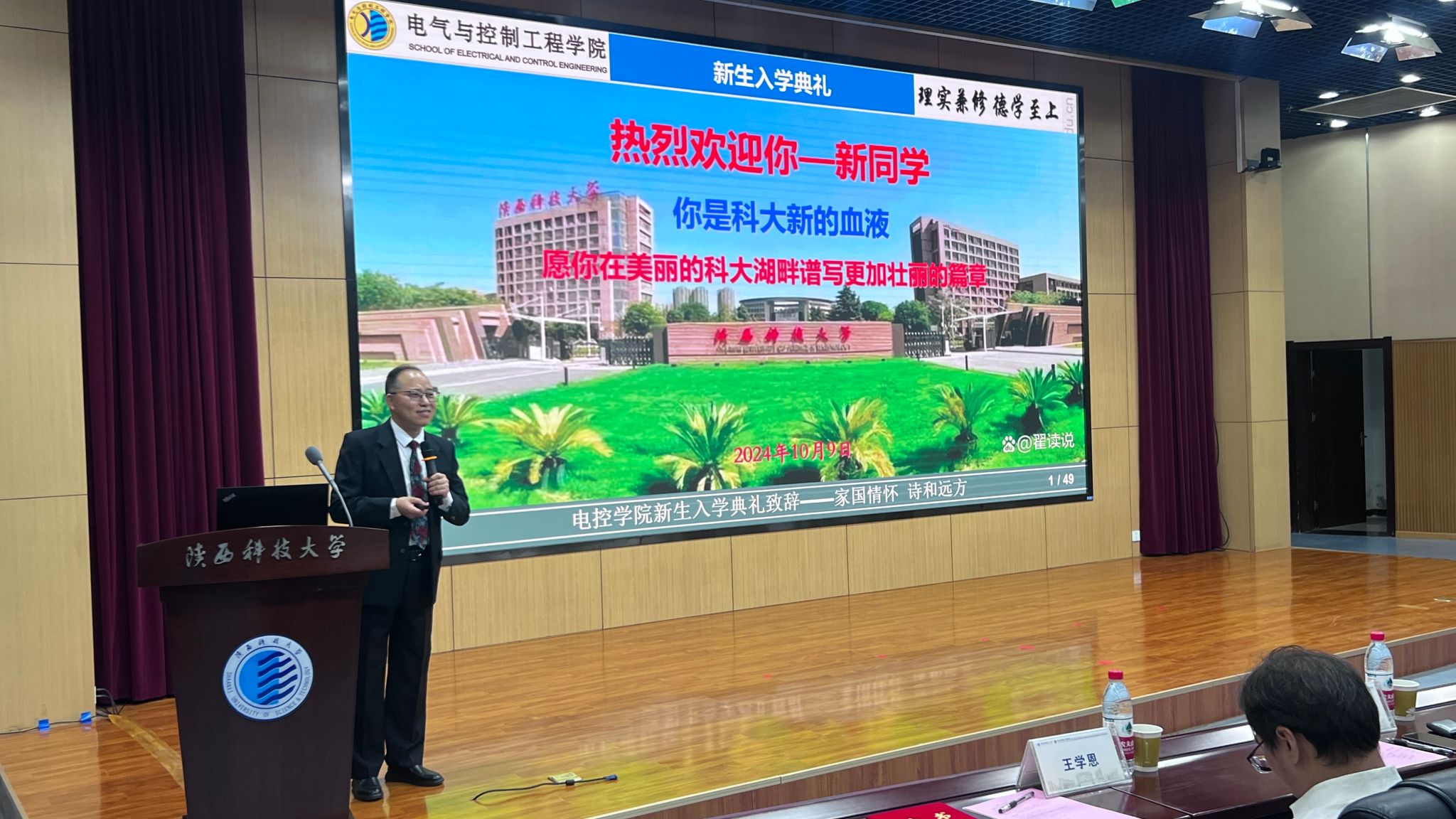 会上,院长助理田雨杰以“砥砺前行,成就未来”为主题寄语新生,指导新生们在大学期间通过积极参加学院科创竞赛、社会实践和公益志愿服务等活动,逐渐转变为一名优秀的大学生,不断提升自身综合素质和实践能力。学院学生会主席强荣倩作为电控优秀学生代表,从学习、生活、提升自身能力三个方面为新生们分享经验。新生代表张佳颖发出倡议,在大学学习生活中要将自己的理想融入到国家发展的大局中,用实际行动书写属于新时代电控青年的篇章。辅导员李静从向各位新生介绍了《电控学院2024级本科生入学教育实施方案》,使全体新生明确了入学教育的内容及意义。
