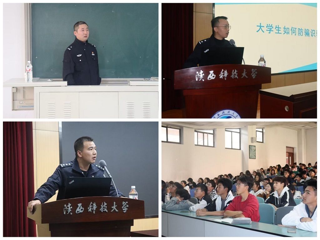 第一场讲座以“防范网络诈骗——校园反诈安全普法教育”为主题,特邀西安市公安局碑林区分局反电信网络诈骗中心两位民警,为学院全体大一新生讲授网络安全第一课。活动以电信诈骗题材电影《孤注一掷》开场,特邀嘉宾结合西安市内多起真实诈骗案例,详细介绍了刷单类、冒充类、网购类及杀猪盘、钓鱼短信诈骗、网络招嫖、投资理财等多种诈骗类型,重点分析了犯罪分子如何利用人性的弱点实施诈骗,现场展示了各类高科技诈骗设备照片、抓捕电诈犯罪分子照片以及民警指导受害人反诈的工作视频等,并通过防诈骗知识问答等互动形式,引导学生加深理解认识、增强防范意识。