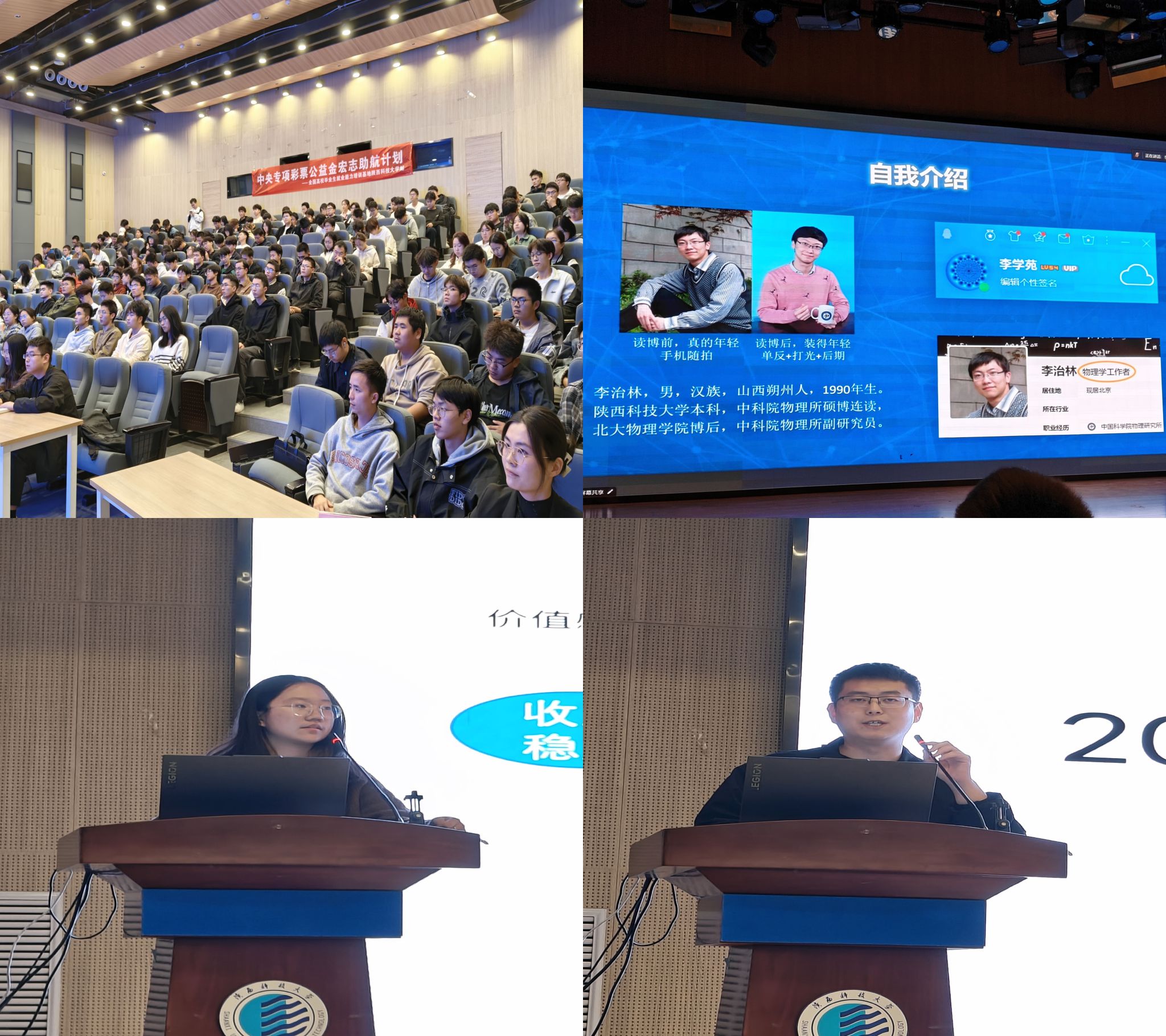 为增强学生职业规划意识,为未来的学习和实践制定明确的方向和计划,10月28日晚,物理学院在人文楼小剧场举办“启迪理想、点亮未来”职业生涯规划系列讲座。学院2007级优秀校友、现任中科院物理研究所副研究员的李治林,2019级优秀校友、现就职于好未来科技教育集团的历怡文,2020级优秀校友、现就职于三星(中国)半导体有限公司的车庆轩分别作交流分享报告。物理学院院长刘建科、党委副书记王晓明、辅导员和本硕学生代表参加报告会。会议由院团委书记邓萌主持。