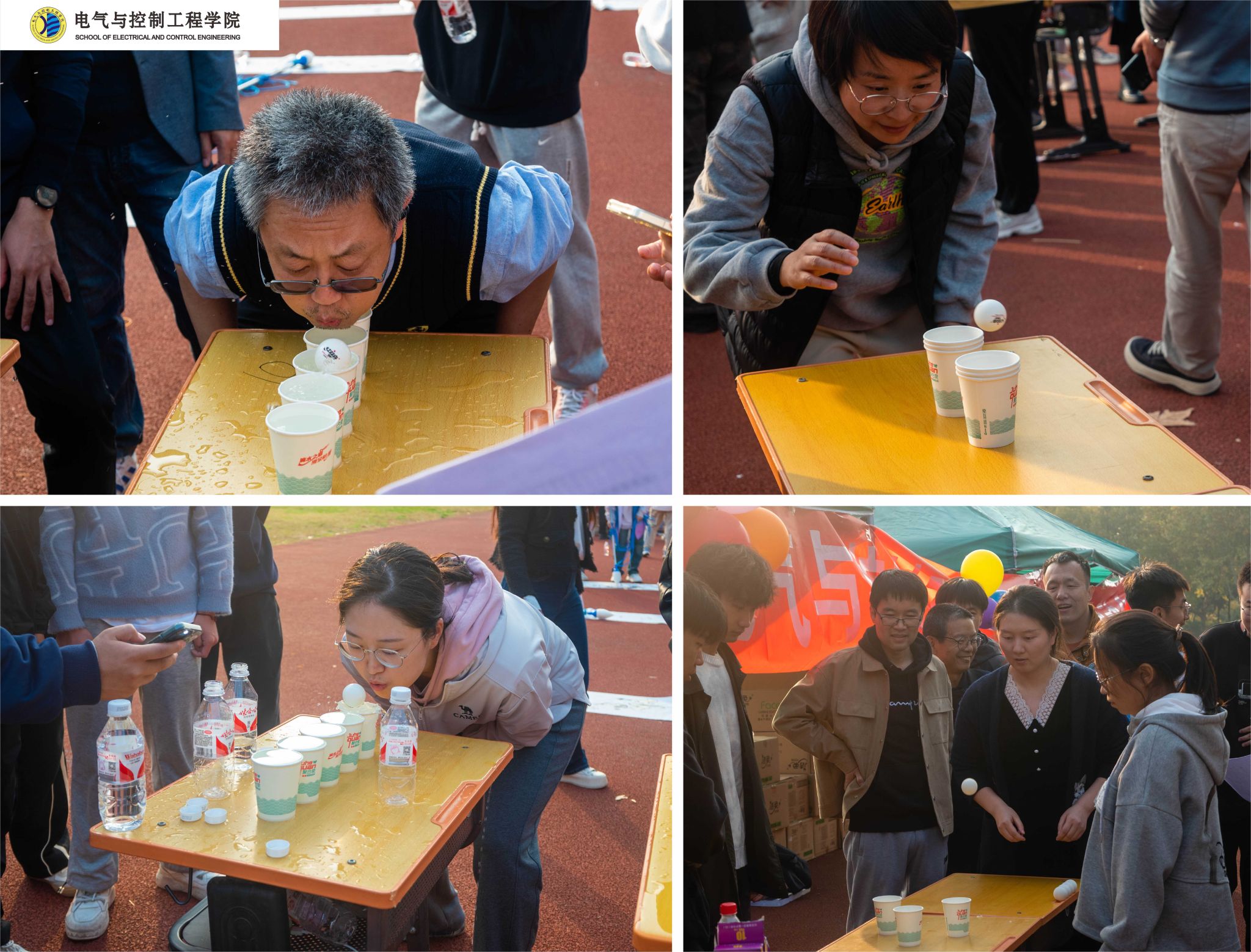 本次趣味运动会分为团体赛和个人赛两大部分。热身完毕后,师生们迅速投入到相应项目的准备活动中,本次趣味运动会的团体赛由“团体持球接力跑”、“神笔马良”、“师生两人三足接力障碍跑”三个项目组成,各队队员紧密协作,操场上欢笑声与加油声此起彼伏,各支参赛队伍引得观众阵阵喝彩,充分展现了电控学院广大师生团结协作、勇于拼搏的精神风貌。个人赛由“闹钟炸弹”、“吹球过河”、“小球进杯”三个项目组成,各位选手神情专注,不仅展现了强劲的综合素质,更展现了他们不断超越自我、奋发向上的运动精神。