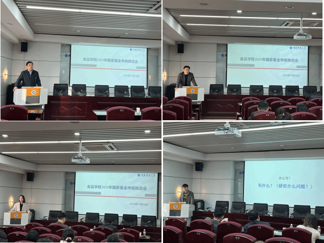 此次会议明确了学院2025年基金申报新目标,学院出台了一系列行动举措,包括建立以党委书记、院长为组长的基金工作小组,全面负责学院基金申报工作的开展与推进;团队负责选题把关、代码选择、本子质量把控;学院开展包括会评专家在内的多轮一对一精准辅导,提升本子质量;为提升教师对外交流积极性,学院制订了相关制度,对参加会议并做报告的教师给予经费支持;加强青年基金帮扶力度,为科研基础较薄弱的青年教师提供更多支持等。食品学院将根据基金工作安排,持续推进基金申报工作的有序开展,保证国家自然科学基金申报的数量和质量,力争在2025年申报中获得佳绩。