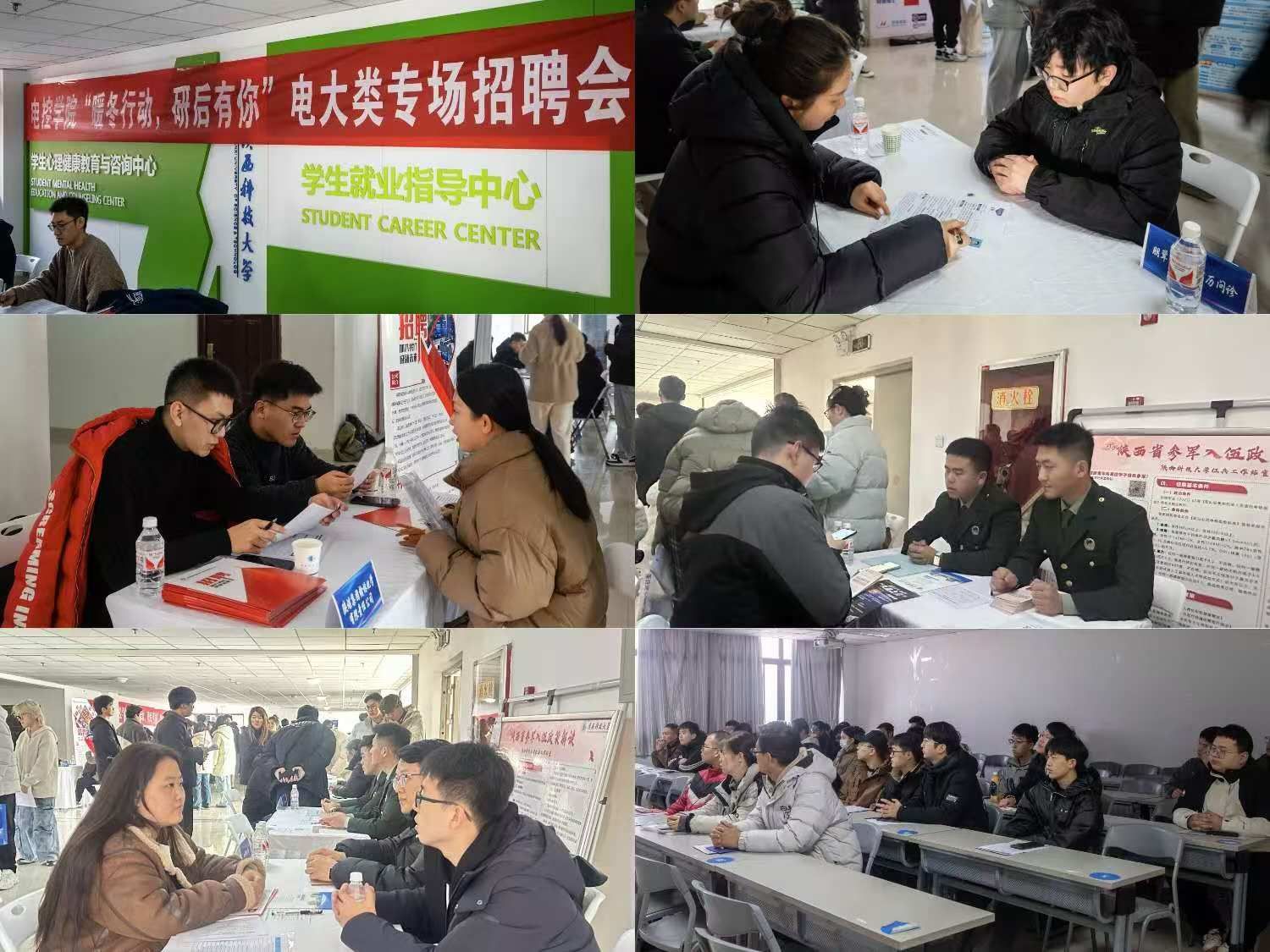开展专场招聘,畅通校园招聘主渠道。“秋冬校园招聘月”系列活动开展以来,学院深入分析市场发展趋势和人才需求形势,紧密联系重点用人单位,于12月24日举办“暖冬行动,研后有你”电大类专场招聘会,邀请正泰清研(陕西)电力电子有限公司、山东崇实电力科技有限公司、陕西威思曼高压电源股份有限公司、陕煤集团榆林化学有限责任公司等对口企业16家来校招聘,累计提供双选岗位68个,企业专场宣讲2场,校企合作洽谈3场,与多家企业在产学研合作等方面达成初步意向。招聘会场还同时设置简历问诊、朋辈帮扶、西部计划、征兵入伍等宣传,多维度提升毕业生就业竞争力。