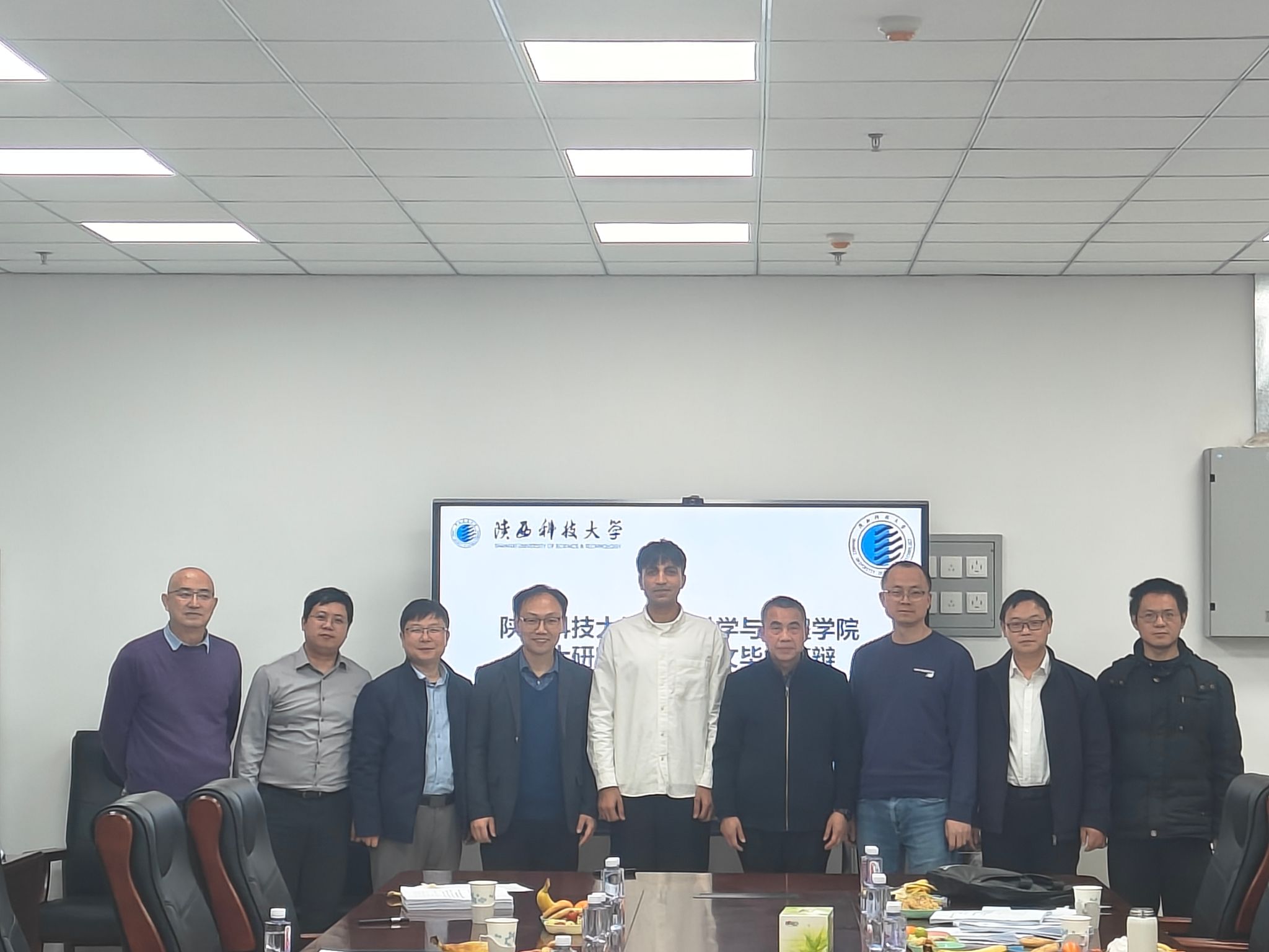 王传义教授(右四)与留学生阿迪(左五)在环境学院毕业答辩现场