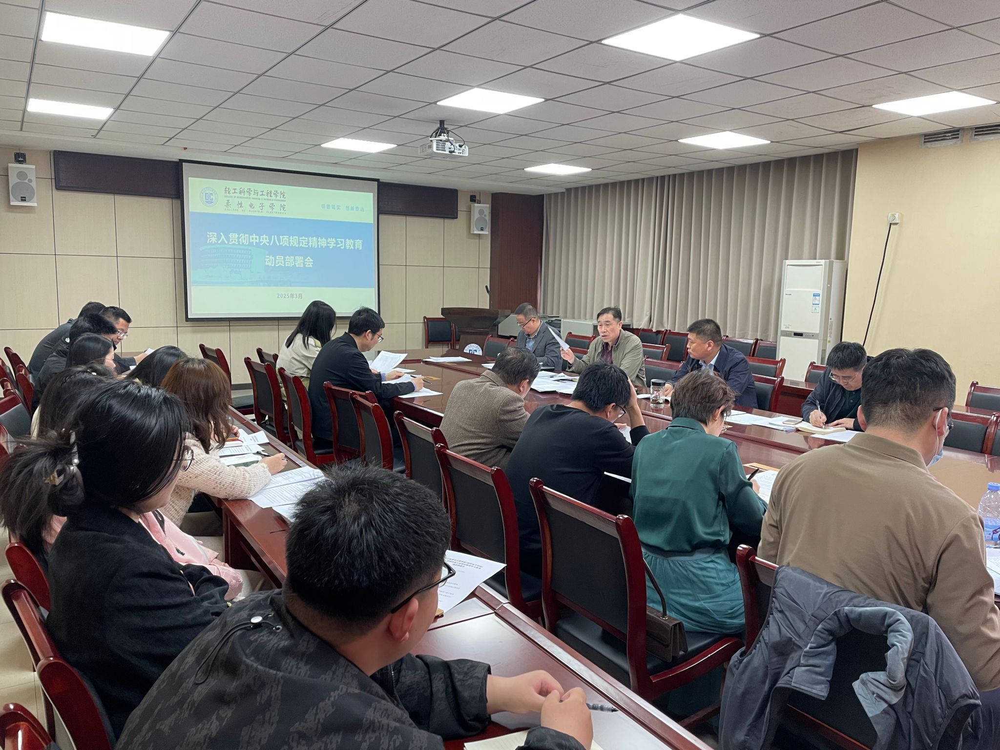 会议深入学习贯彻习近平总书记在贵州、云南考察时的重要讲话精神、习近平总书记关于加强党的作风建设的重要论述、关于深入贯彻中央八项规定精神学习教育的重要讲话和重要指示精神。学院党委副书记传达学习学校实施方案及会议要求,全面解读学院党委学习教育实施方案和重点任务清单。