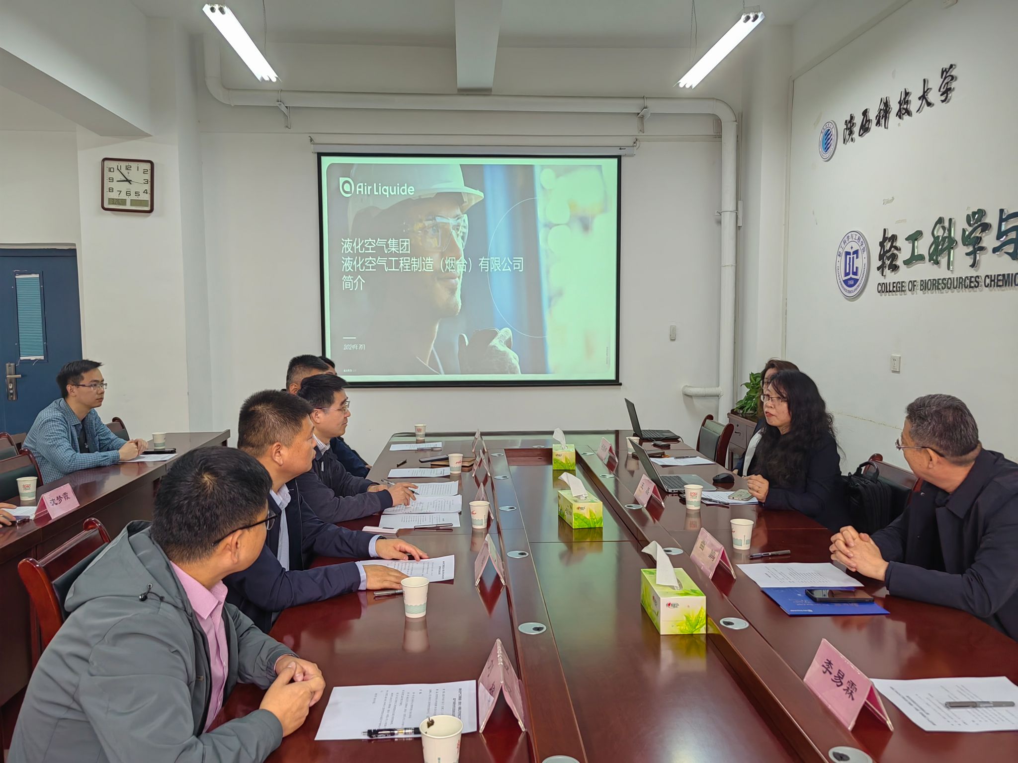 3月26日,烟台市蓬莱区政协秘书长曲鹏、法国液化空气集团——液化空气工程制造(烟台)有限公司人力资源及总务部门经理王磊、法液空工程制造中国区招聘及人力资源项目经理毛蓓娜等一行到轻工科学与工程学院(柔性电子学院)开展产学研合作交流。轻工学院院长吕斌、党委副书记张乾隆、新能源科学与工程系全体教师参加座谈会。
