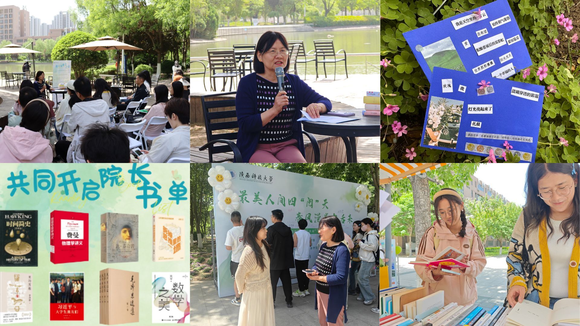 “院长荐读”展区汇集了各学院院长推荐的30本经典书目,为研究生们提供了权威阅读指南;“书香寄语”留言板上也记录了师生们真挚的阅读感悟和启动读书打卡的决心;即兴“拼贴诗”活动则通过诗句重组激发研究生们创意表达,进而感悟文学魅力。三大沉浸式打卡点吸引了众多师生驻足参与,让阅读以更生动活泼的方式走进校园生活。