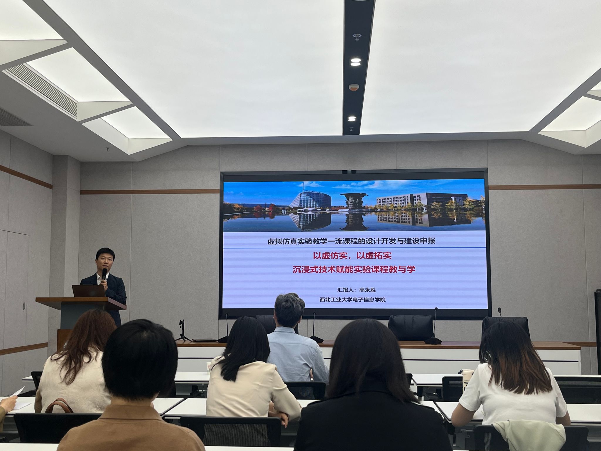 会上,高永胜以《虚拟仿真实验教学一流课程的设计开发与建设申报》为题,结合西北工业大学的典型建设案例,从课程设计逻辑、技术实现路径、教学模式创新等维度,分享了课程建设经验与实践心得。随后,2024年校级立项的6位课程负责人分别围绕课程建设情况、取得的建设成效、存在的问题以及下一步建设思路等方面依次进行了汇报。高永胜逐一对课程建设情况进行点评,他充分肯定了多数课程团队在课程框架搭建、教学场景模拟等方面取得的成效,认为阶段性成果亮点突出。同时,也从专业视角指出共性问题:教学资源整合不足、应用深度欠缺;课程设计在高阶性、创新性和挑战度的呈现上有待加强;申报材料的逻辑架构与亮点提炼需要提升。这些专业建议为后续课程优化指明了方向。