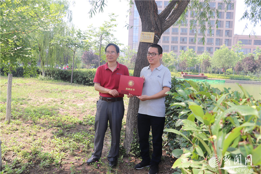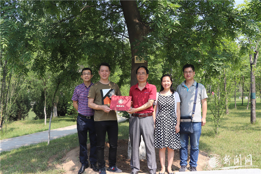 陈福生向校友们简要介绍了校友林建设情况,并代表学校对校友的捐赠表示衷心的感谢,同时向校友代表一一颁发了捐赠证书。莘莘学子心,深深母校情,树木认捐表达了校友们对母校的挚爱、关心与支持,他希望各位校友能够和母校共同发展,发扬陕科大“三创两迁”精神,不忘初心,在自己的工作岗位上脚踏实地、积极进取、勇攀高峰。