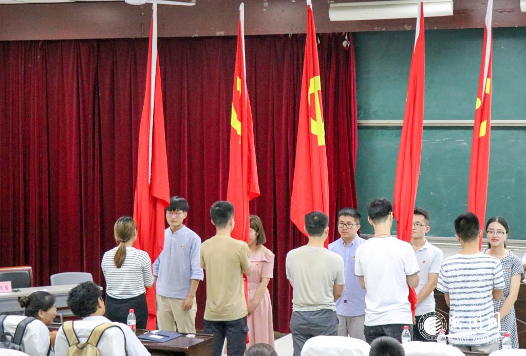佩戴党徽,师生同行。化工学院以“教师为我佩党徽”为主题举行新发展党员的入党仪式,进一步深化党员对“佩党徽、亮身份、当先锋、树形象”的认识。仪式上,青年教师党员代表殷政从青年莫忘大理想、爱岗敬业勇担当、刻苦钻研成行家等方面鼓励广大青年党员认真做人,踏实做事,在学习和生活中发光发热,以实际行动发挥党员先锋作用。