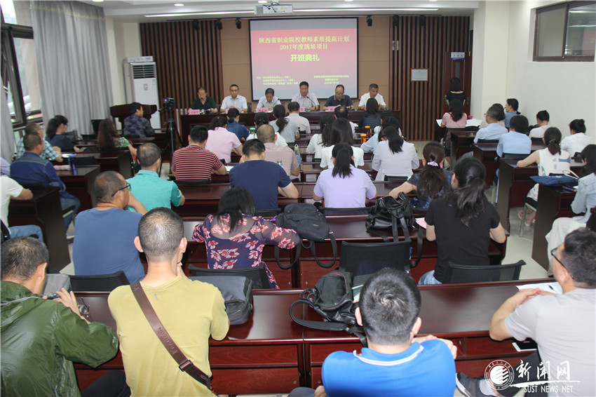 陕西省职业院校教师素质提高计划2017年度国培项目开班仪式于7月3日在德赢官网教育学院举行。陕西省教育厅副巡视员韩忠诚出席并讲话。德赢官网机电工程学院党委书记夏祥林,电气与信息工程学院副院长(主持工作)汤伟,教育学院院长刘正安、副院长李焕朝,来自相关专业学院的项目负责人、班主任以及70余名学员参加了此次仪式。仪式由教育学院党委书记王贵平主持。