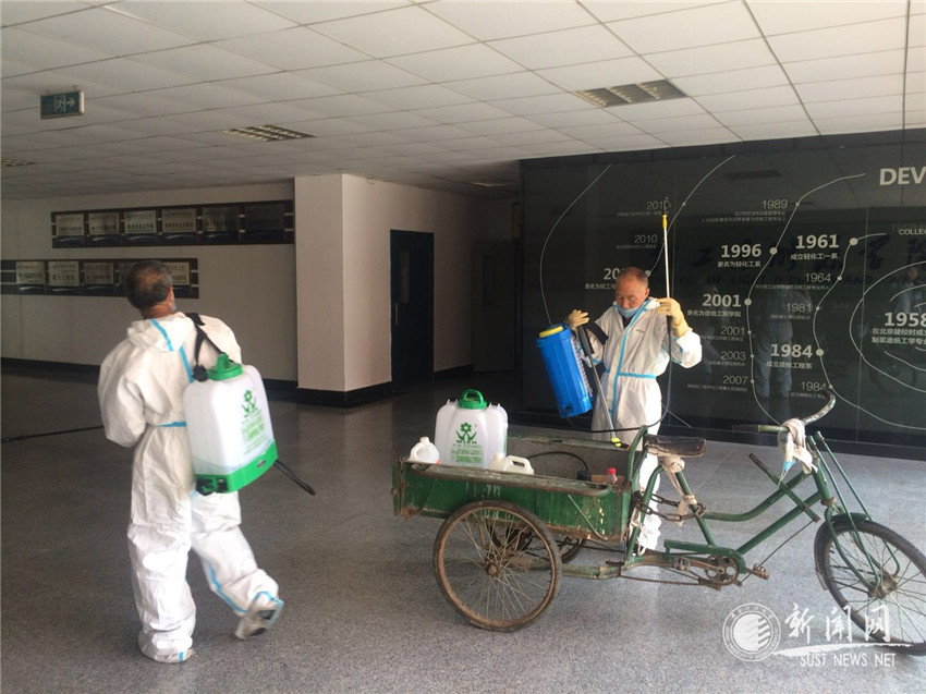 9月20日至30日,校医院联合校园管理中心、学生公寓管理办、图书馆,依次对教学楼、逸夫楼、图书馆等所有楼宇及各公寓内的学生宿舍、卫生间、走廊等公共场所进行全面彻底预防性消毒。物业管理中心、工程维修中心对教学区、学生生活区、沁园小区的下水道安装隔网、布设灭鼠器具等。