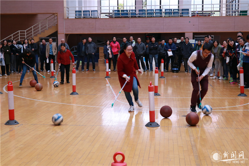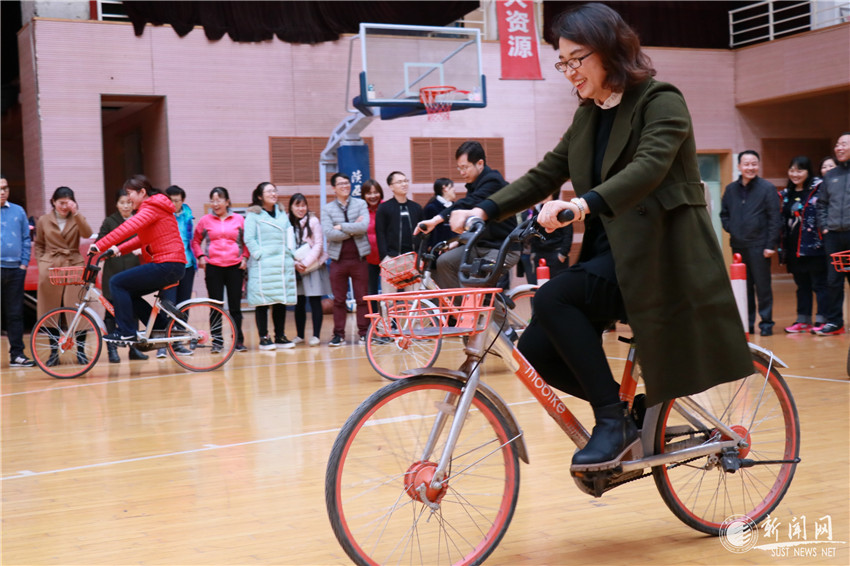 首先开始的是个人项目,在乒乓球定点投掷比赛中,教研室老师运用专业力学知识反复试验,充分考虑空气中的微风、投掷力道的大小、投掷角度的高低,比赛异彩纷呈,赛场上出现了各种弧线,俨然成了力学知识大比拼;在自行车漫步和赶“猪”跑项目中,一个要求速度最慢,一个要求速度最快,老师们奇思妙想,赛场上各类状况层出不穷,笑声、掌声、呐喊声不绝于耳。