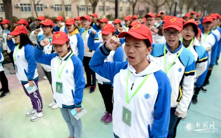 校团委副书记李鹏、区治污减霾办主任李卫华先后致辞,陕西乐怡医疗科技有限公司董事长雷丽娟向大学生志愿团队捐赠防雾霾口罩,一百余名大学生宣誓加入蓝天青春卫士志愿者服务队,为绿水青山贡献青春力量。