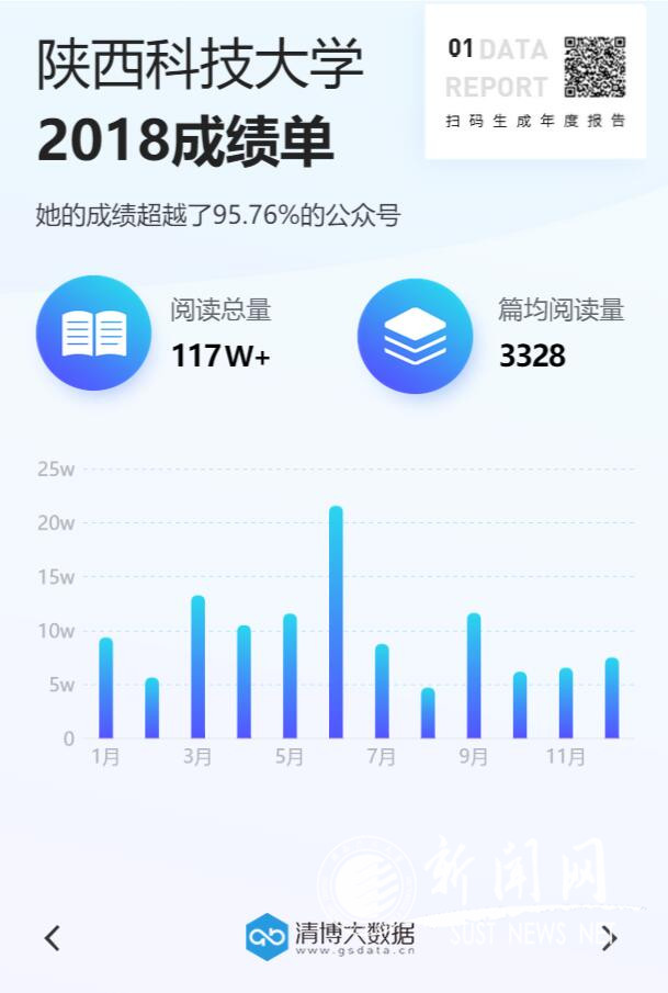 数据显示。微信平台以117万总阅读量,3328篇均阅读量的总成绩超越了95.76%公众号,其传播指数WCI 812.78超越了96%的公众号。2018年微信共发布299天,推送352篇图文,收获2万+个点赞,勤勉度超越了79%的公众号。其中《甲子校庆丨德赢官网Vwin宣传片、画册、大事记震撼首发》以当周4万+阅读数荣登最热文章,“人才”、“项目”、“学科”等词汇被评为德赢官网年度热词。