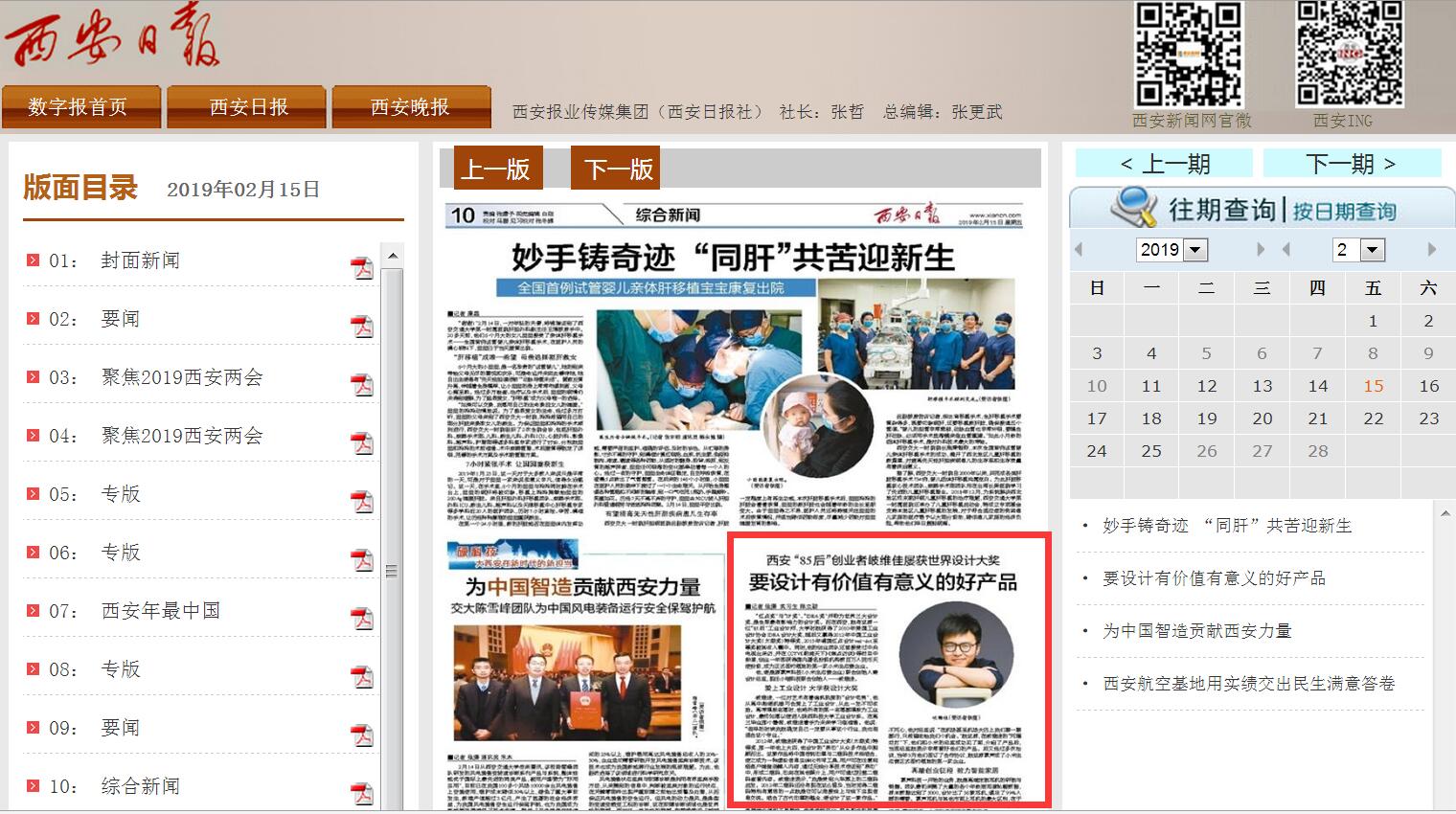 《西安日报》02月15日以《西安 “85后”创业者岐维佳屡获世界设计大奖》为题,长篇报道德赢官网2012届毕业生、小喵科技联合创始人岐维佳创业之路。全文转载如下: