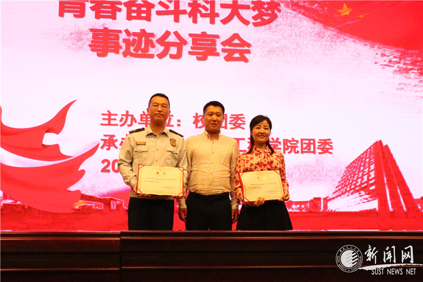 此次大会特邀“全国向上向善好青年”李晓茹、“中国好人”李治担任分享嘉宾,并与同学交流互动。王政军代表机电工程学院团委特聘两位嘉宾为“青春奋斗科大梦”事迹分享会讲师。
