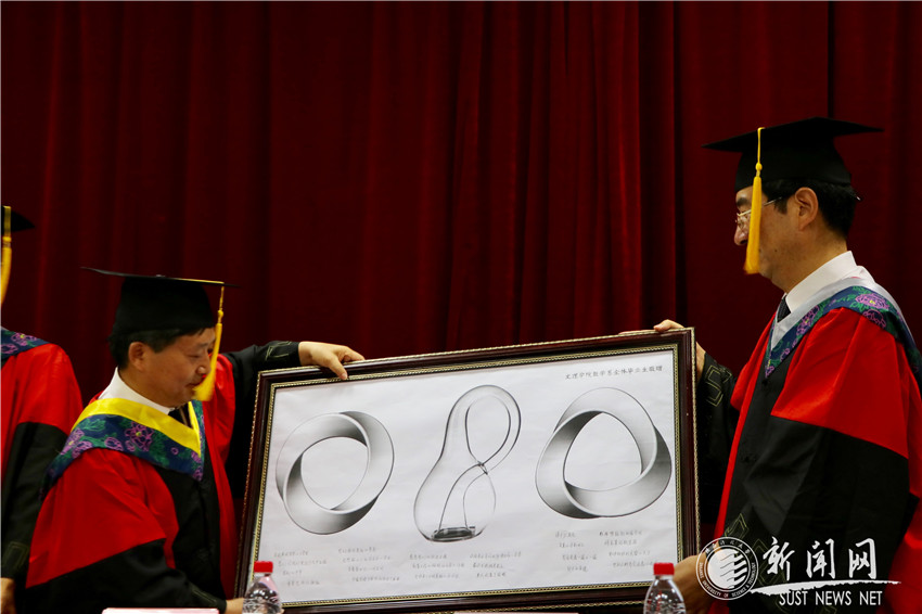 感恩科大,放飞梦想。学院为每一位毕业生馈赠一枚印有校徽等科大元素和自己姓名的专属水晶印章,定制一款纪念手提袋,精心制作毕业视频,学院领导、专业教师等毕业前深入宿舍慰问即将远航的学子,这些贴心的举措让毕业生感受到学校和老师最真诚的关爱和殷切的希望。毕业典礼上,数学系、物理系、英语系学生为学院送上具有专业特色的专属礼物,“莫比乌斯环”、“克莱因瓶”、“永动杆”、“磁悬浮”、“科大拼图”......别样礼物别样情,表达了毕业学子们对学校、老师培养之恩的诚挚感谢。