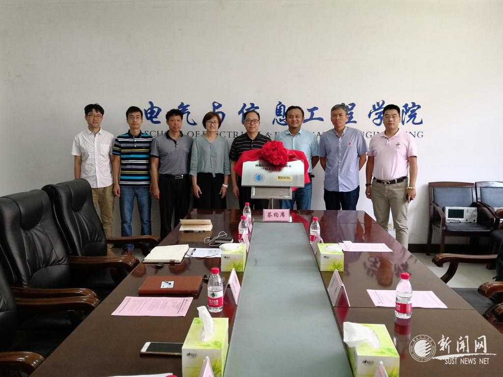 本次签约合作仪式,双方就成立示范性联合实验室、大学生工程实践教育基地等领域开展深度合作达成了深刻而广泛的共识。最后,在校企双方人员的共同见证下,汤伟代表学院与苏州普源精电科技有限公司签署校企合作协议,并与孙建成总经理为联合实验室揭牌。院长助理杨南代表学院接受企业方赠送设备。