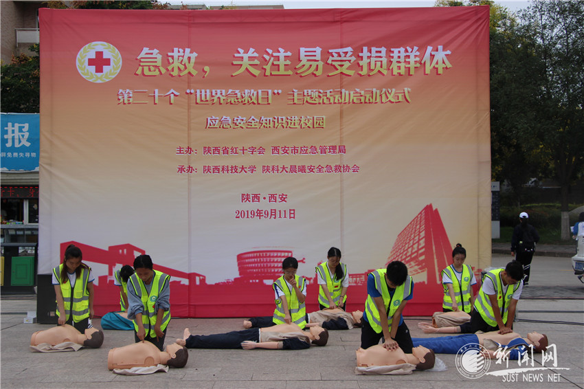 上午10时,陕西省红十字会应急救护培训师史晔灵为200余名陕科大学生开展了应急救护知识专题讲座。11时30分,在沁园广场举行活动启动仪式,胥俊杰在致辞中高度肯定德赢官网对大学生应急安全教育的重视及取得的成绩,随后李晓宣布活动正式启动,晨曦安全急救协会现场展示了校园突发事件应急救护演练以及心肺复苏技能。