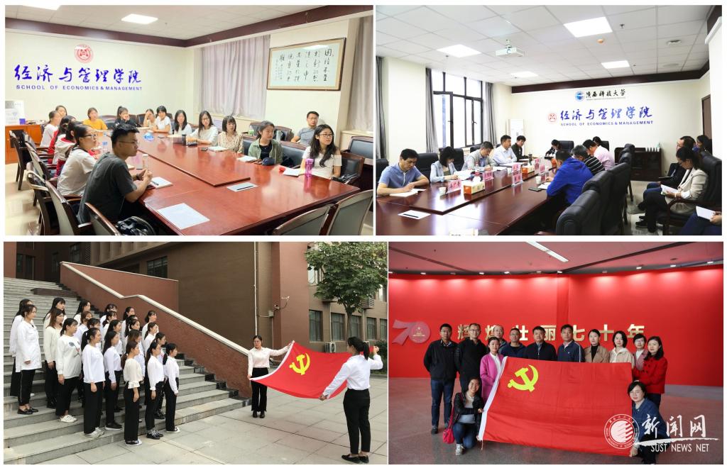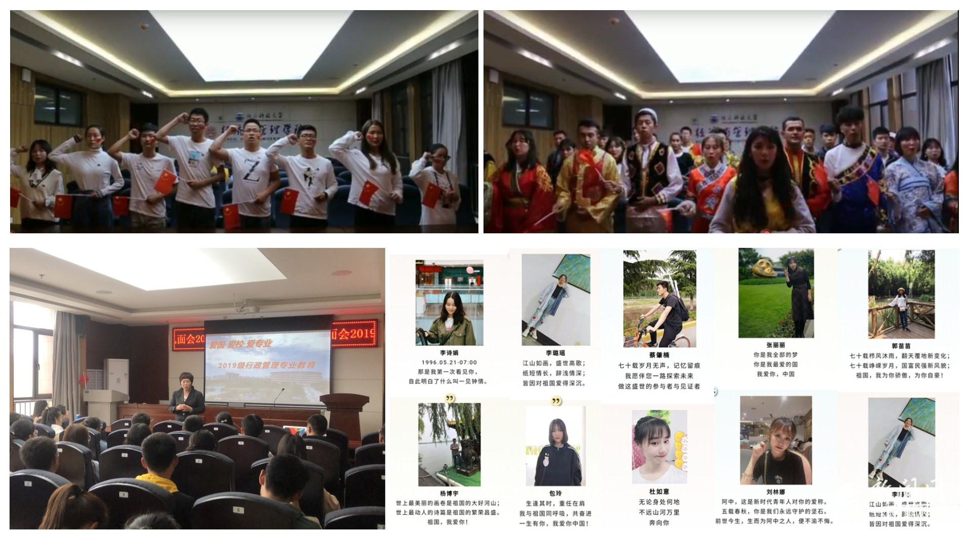 行政教工党支部组织行政管理专业学生举行了以“爱国•爱校•爱专业”为主题的教育活动,教工党员以专业为背景,结合新中国70年的发展史和德赢官网“三创两迁”的历史,引导学生以高标准的专业素养为核心竞争力,自觉把爱国、爱校信仰落实为具体行动。营销学生党支部开展“歌声礼赞祖国”主题党日活动,党员与2019级预科学生一同唱响《爱我中华》,动听的歌声充分展示出学生党员和少数民族学生的精神风貌,更唱响了中华儿女一家亲的主旋律。行政学生党支部开展“三行情诗,向祖国表白”主题党日活动,每位党员用简短的文字、真挚的情感表达自己对祖国母亲的热爱。营销教工党支部、办公室党支部等赴曲江国际会展中心参观“辉煌壮丽七十年•追赶超越再出发——陕西省庆祝新中国成立70周年成就展”,党员们认真聆听讲解、积极参与互动,在展厅的党旗面前重温入党誓词,并在“祖国,我想对你说”的展区旁写下自己对祖国的美好祝福。