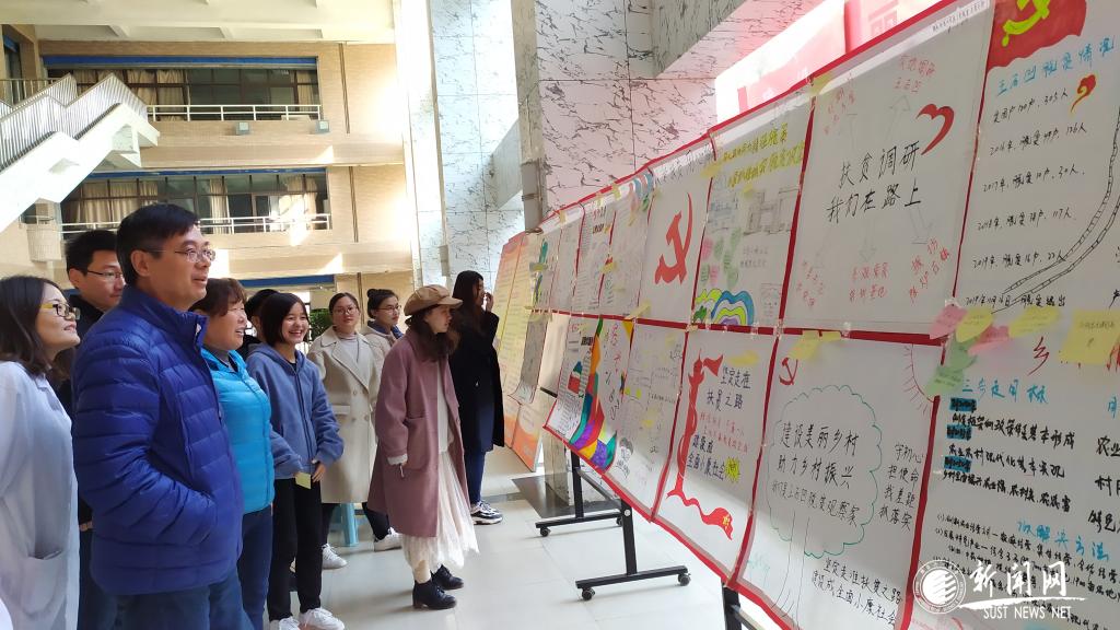 11月25日,从王石凹村回来后,支部组织党员在轻工学院一楼大厅举办了主题海报展,通过手绘成果展现王石凹村产业发展、基础设施建设、乡村治理、村容村貌转变,并结合“扶智、授渔、造血”号召更多师生为王石凹振兴乡村献计献策。