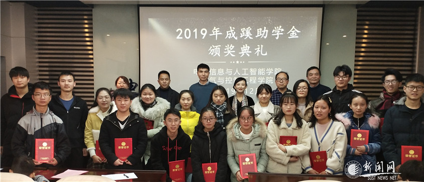 12月27日上午,电气与控制工程学院、电子信息与人工智能学院在实验楼2A206报告厅联合举行2019年“成蹊助学金”颁奖仪式。上海成蹊信息科技有限公司(以下简称“成蹊公司”)财务总监陈泥、高级人事经理谢青、电控学院副院长(主持工作)汤伟、电智学院党委副书记严渭青、德赢官网Vwin电信校友会秘书长李光明、电智学院物联网工程专业负责人李颀出席颁奖仪式,颁奖仪式由李光明主持。