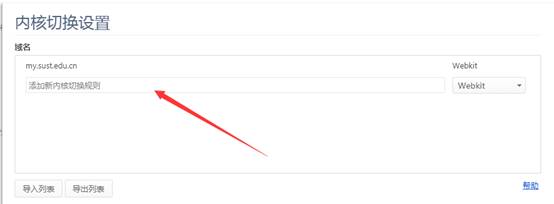 3.在内核切换按钮的弹出页面添加新规则处,输入my.sust.edu.cn敲回车即可。