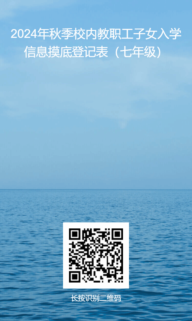 3.请教职工扫描二维码(附件1),按要求填报《2024年秋季校内教职工子女入学信息摸底登记汇总表(一年级/七年级)》。