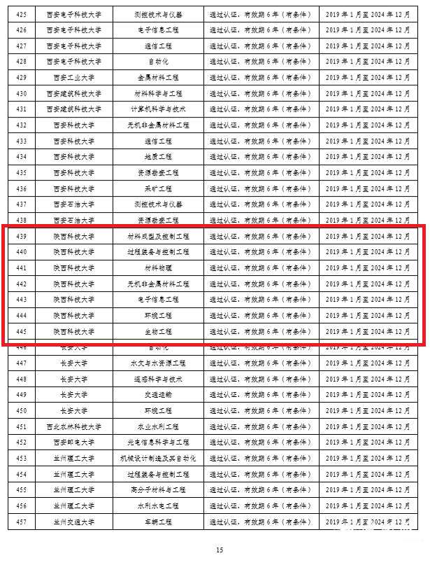 开创一流本科教育新局面:6月,教育部高等教育教学评估中心和中国工程教育专业认证协会公布了2018年参加全国工程教育专业认证的认证结论,学校材料成型及控制工程等7个专业顺利通过,位居陕西高校第一。截至2019年底,学校工程教育专业认证正式通过、完成进校考查、拟进校考查、新受理专业数合计18个,位列陕西高校第三,全国轻工类高校第一名。