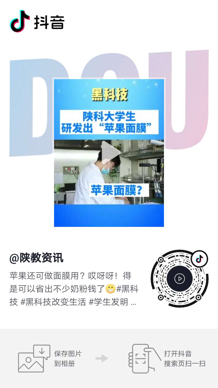 陕教资讯抖音号:陕科大学生研发出“苹果面膜”