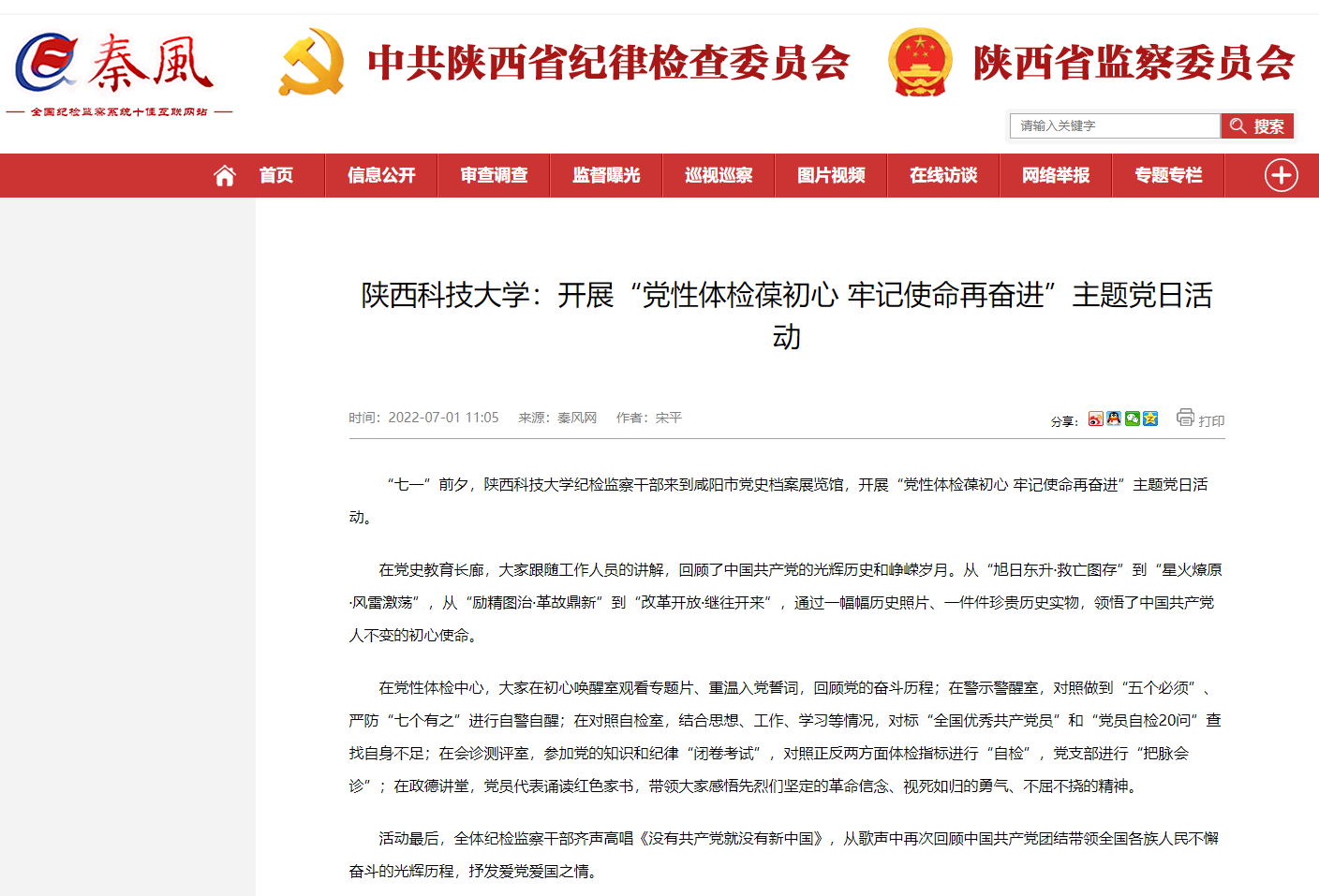近日,秦风网报道德赢官网开展“党性体检葆初心 牢记使命再奋进”主题党日活动。