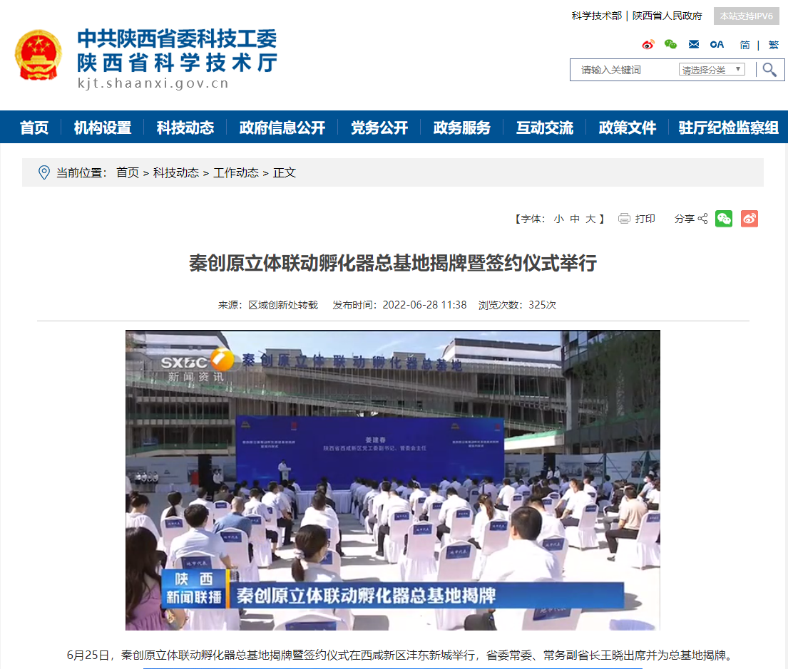 中共陕西省委科技工委、陕西省科学技术厅官网:秦创原立体联动孵化器总基地揭牌暨签约仪式举行