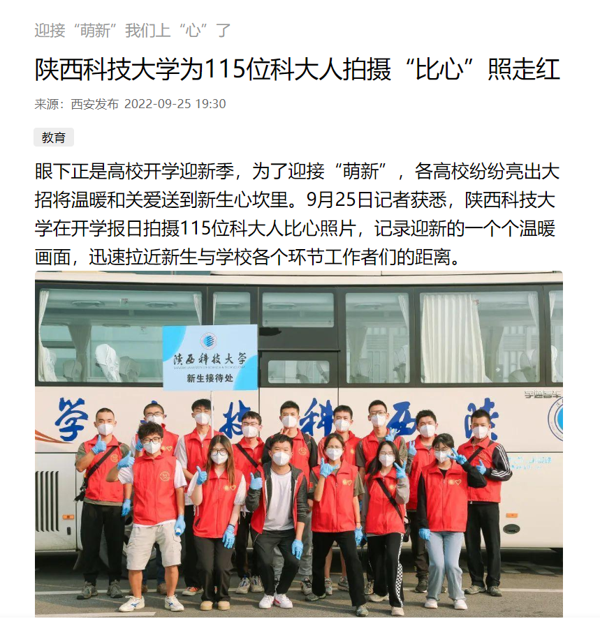 近日,西安发布报道德赢官网为115位科大人拍摄“比心”照走红