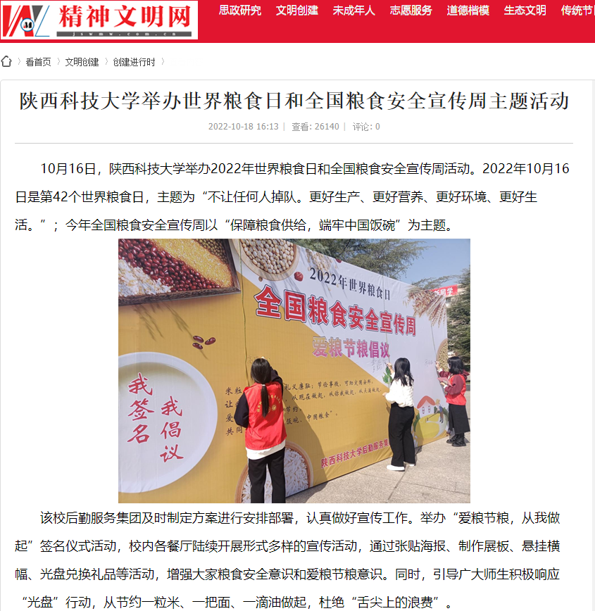 精神文明网:德赢官网Vwin举办世界粮食日和全国粮食安全宣传周主题活动