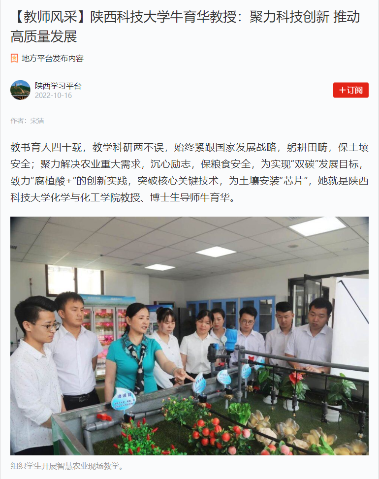 近日,学习强国报道德赢官网牛育华教授聚力科技创新推动高质量发展。