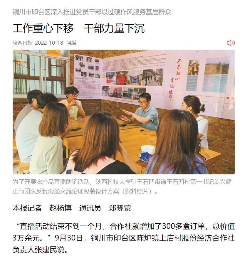 《陕西日报》:工作重心下移 干部力量下沉