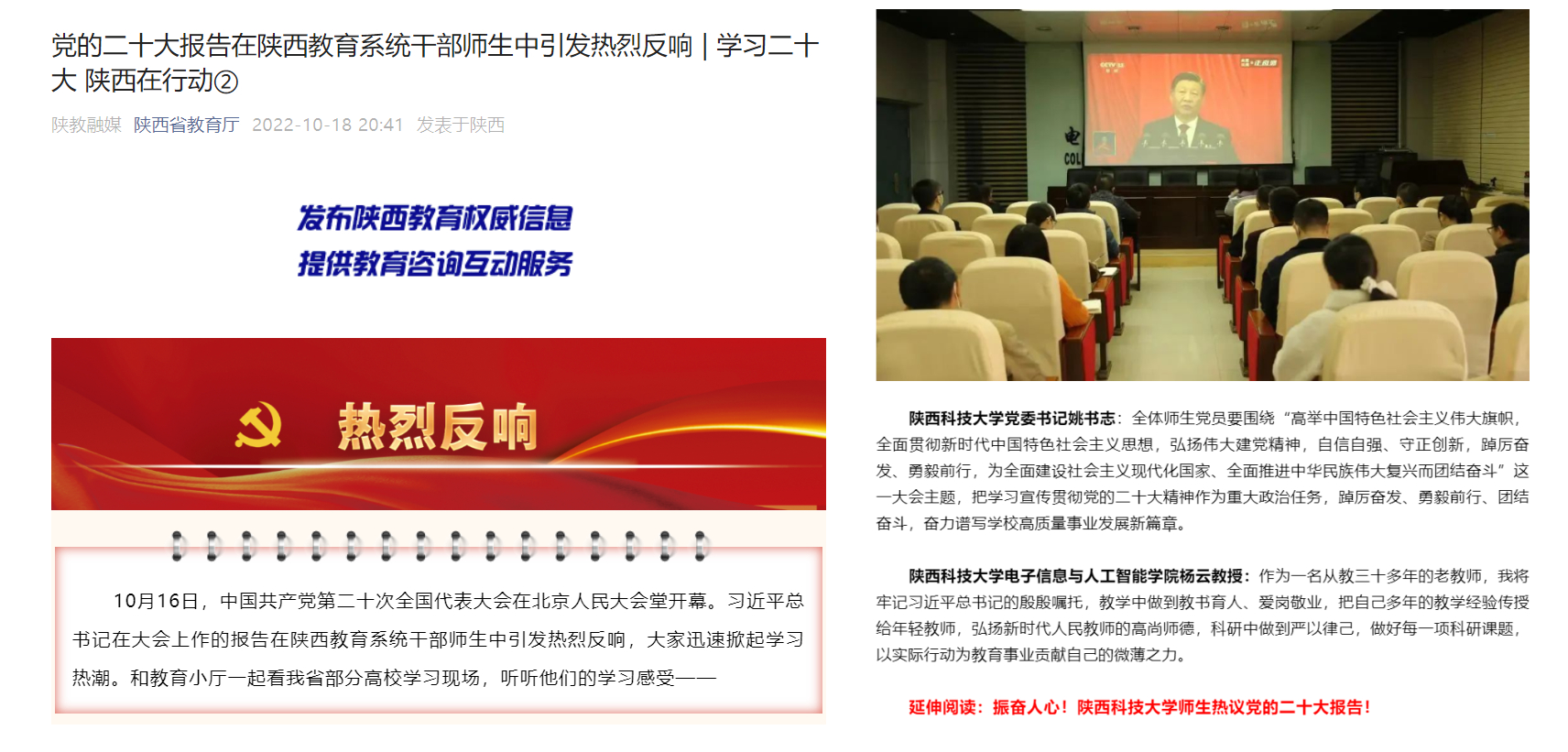 陕西省教育厅官微:党的二十大报告在陕西教育系统干部师生中引发热烈反响 | 学习二十大 陕西在行动②