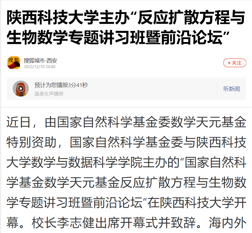 搜狐新闻:德赢官网Vwin主办“反应扩散方程与生物数学专题讲习班暨前沿论坛”