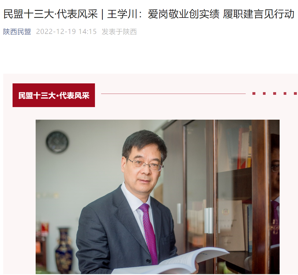 近日,“陕西民盟”官方微信公众号报道民盟十三大代表、德赢官网副校长王学川爱岗敬业创实绩、履职建言见行动事迹。