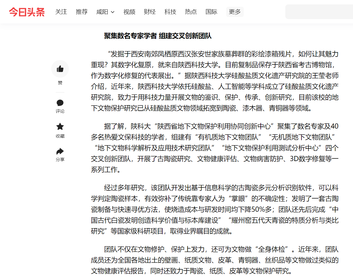 今日头条:【高质量发展走一线】陕西高校“黑科技”助力文物保护修复