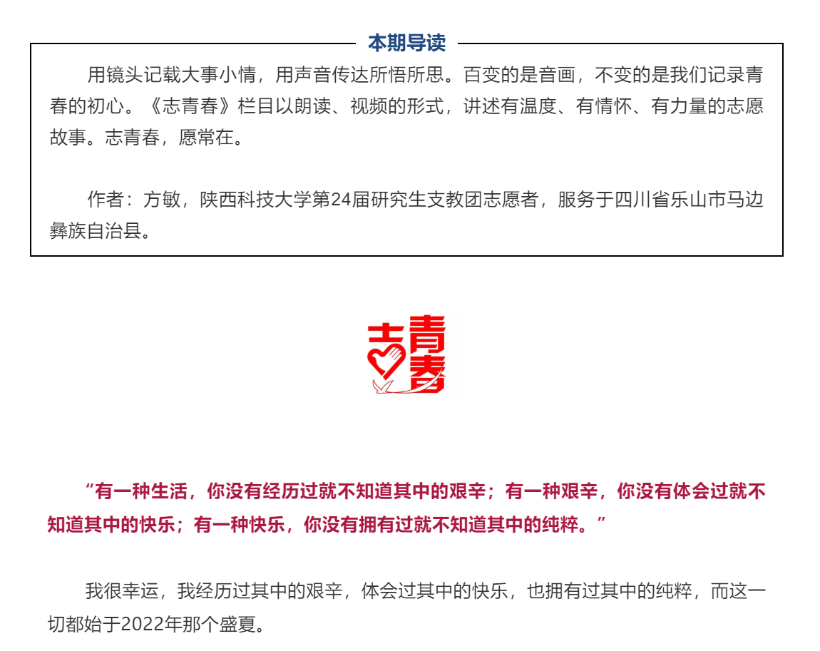 近日,“中国青年志愿者”微信公众号刊发德赢官网第24届研究生支教团志愿者方敏的志愿故事。