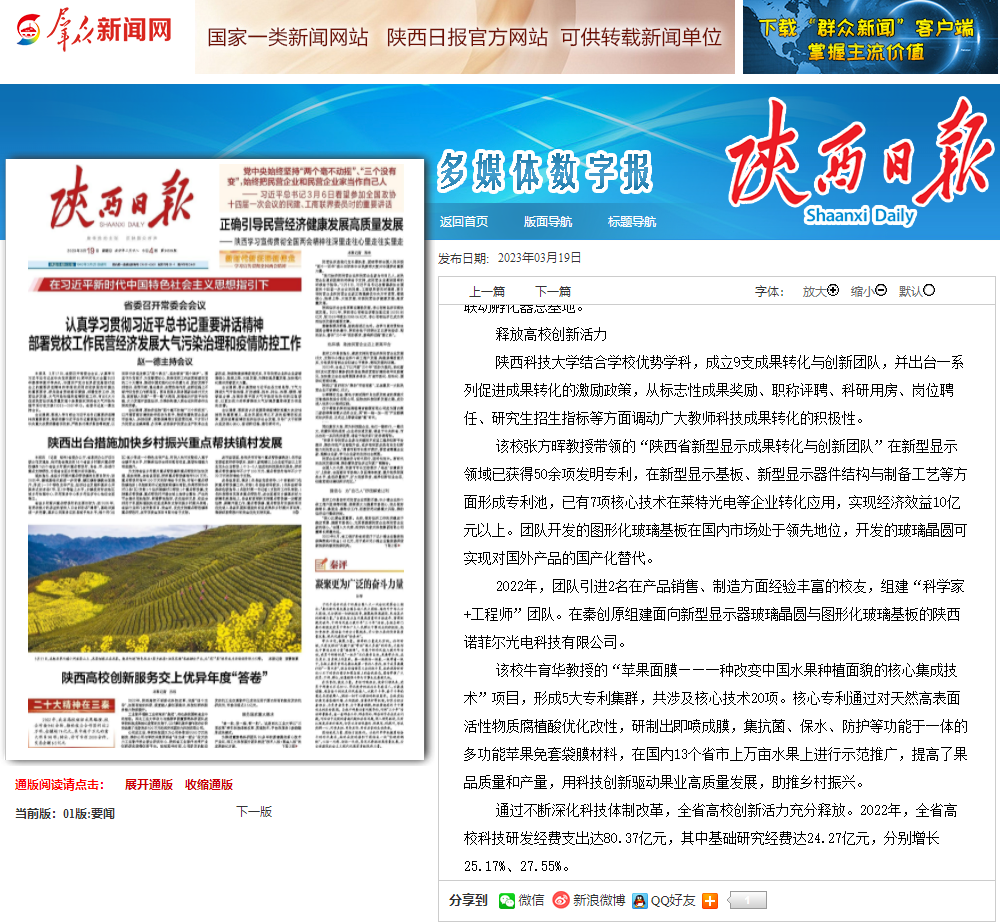 《陕西日报》:陕西高校创新服务交上优异年度“答卷”