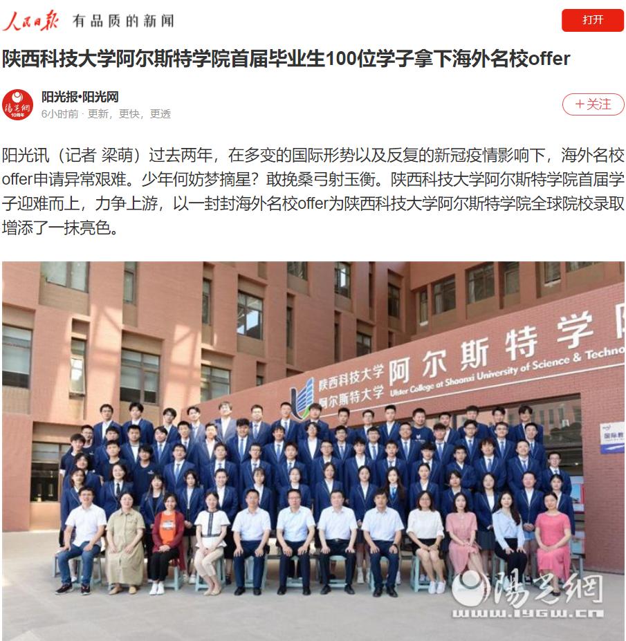 近日,中央广电总台国际在线、人民日报APP、中国周刊网、三秦都市报等媒体报道德赢官网阿尔斯特学院首届毕业生100余位学子拿下海外名校offer。
