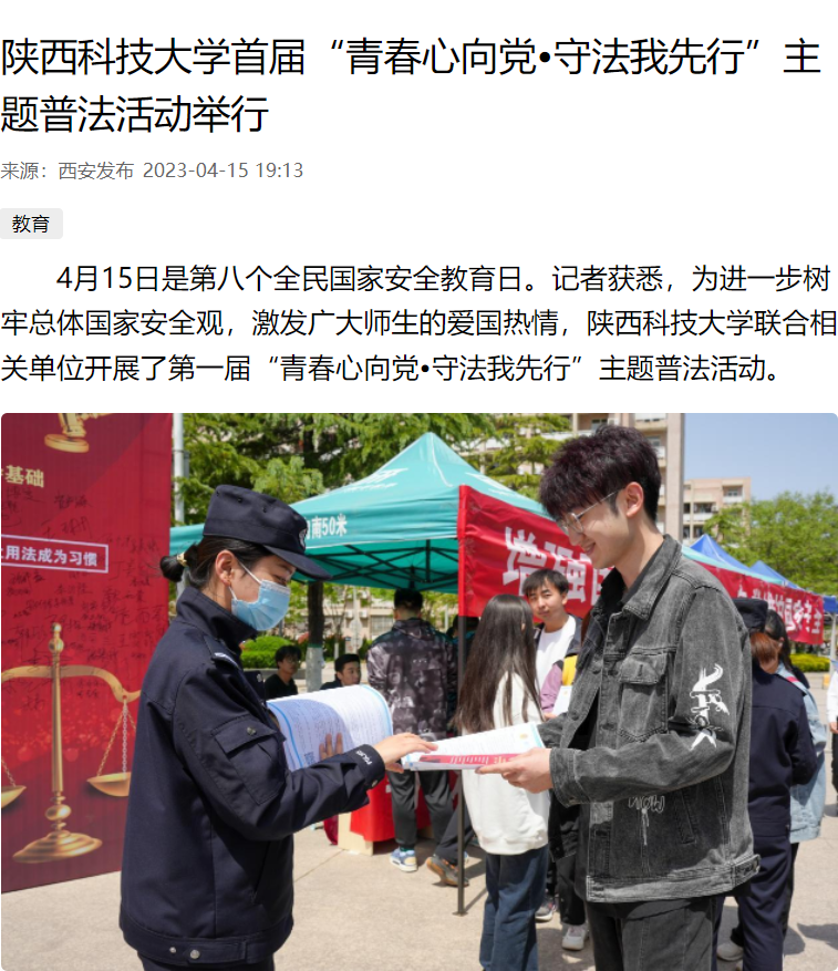 近日,西安发布报道德赢官网举行首届“青春心向党•守法我先行”主题普法活动。